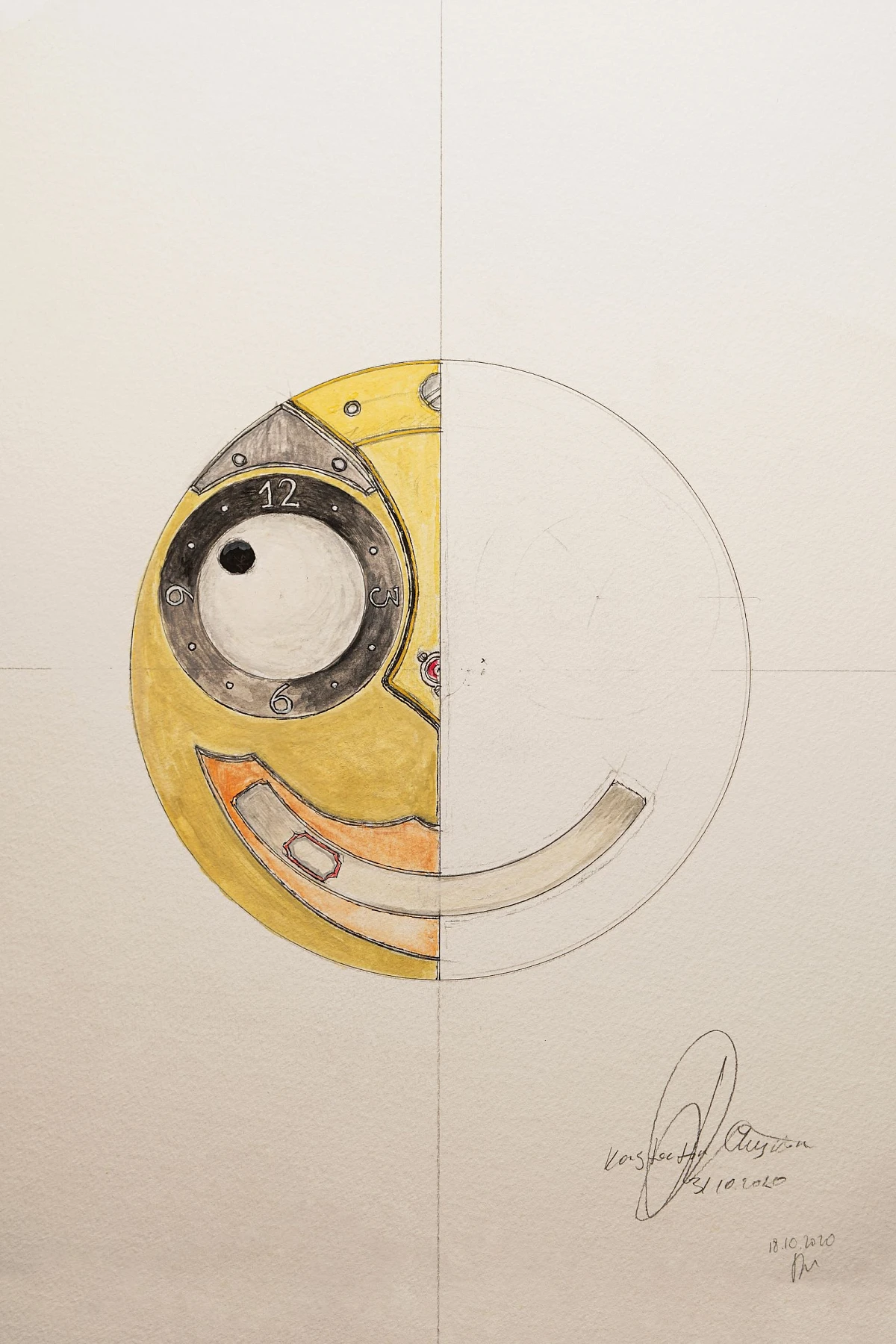 Chaykin showed these sketches to the founder of Only Watch in November 2020. However, the idea was abandoned because of the difficulties that arose during at development stage. The movement could not be produced by the auction date. While working on these sketches, the master came up with another concept. A skeletonized dial and a retrograde indicator hidden in a "smile" shaped the famous Martian Tourbillon watch.