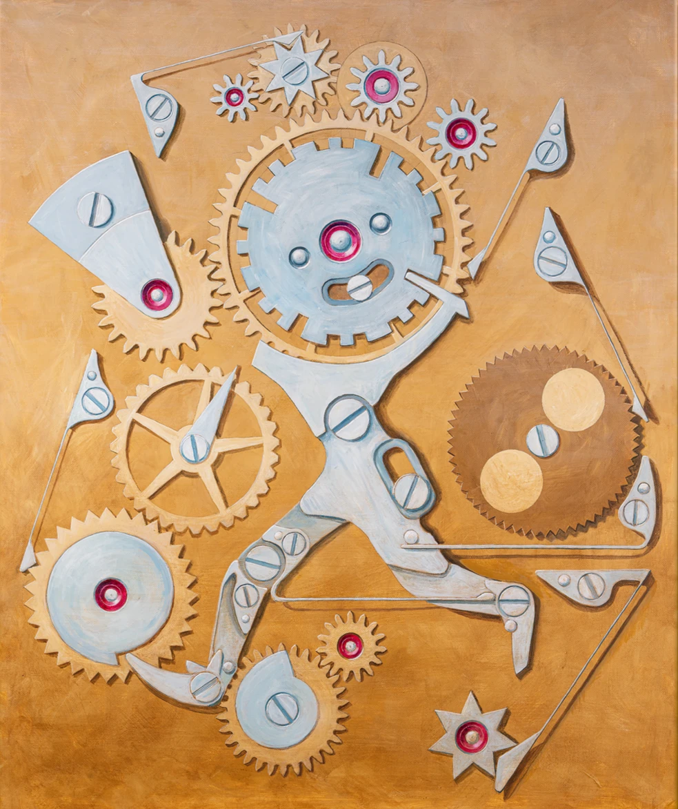 A particular mood arises when contemplating this painting: the awareness that, somewhere in the hidden depths of the ultra-complicated «White Rabbit» wristwatch, the ceaseless work of the calendar continues—its main lever having become the prototype of the Eternal Wanderer, whom Konstantin Chaykin has captured on canvas in *Ahasverus*.