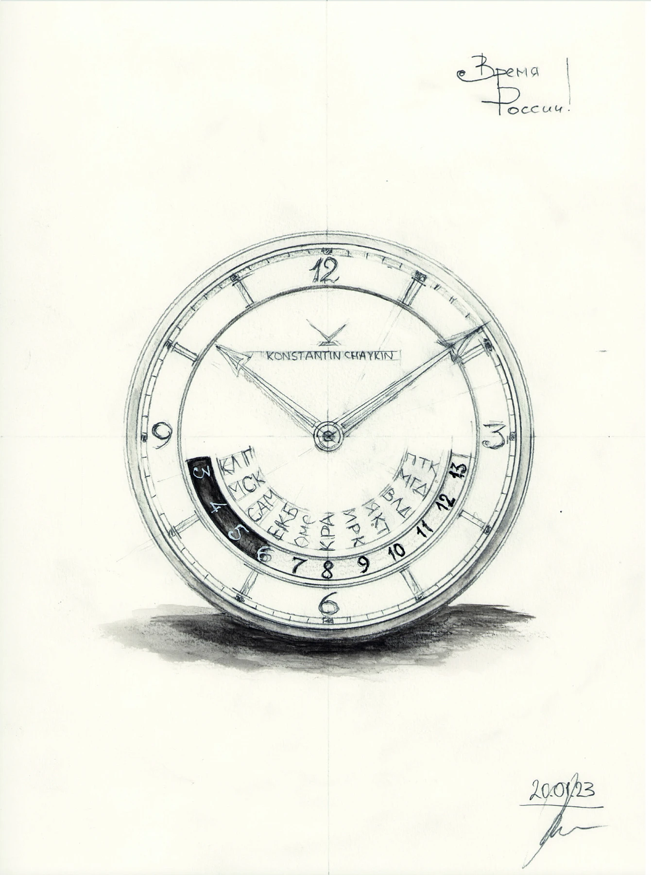 Sketch of the “Russian time” clock